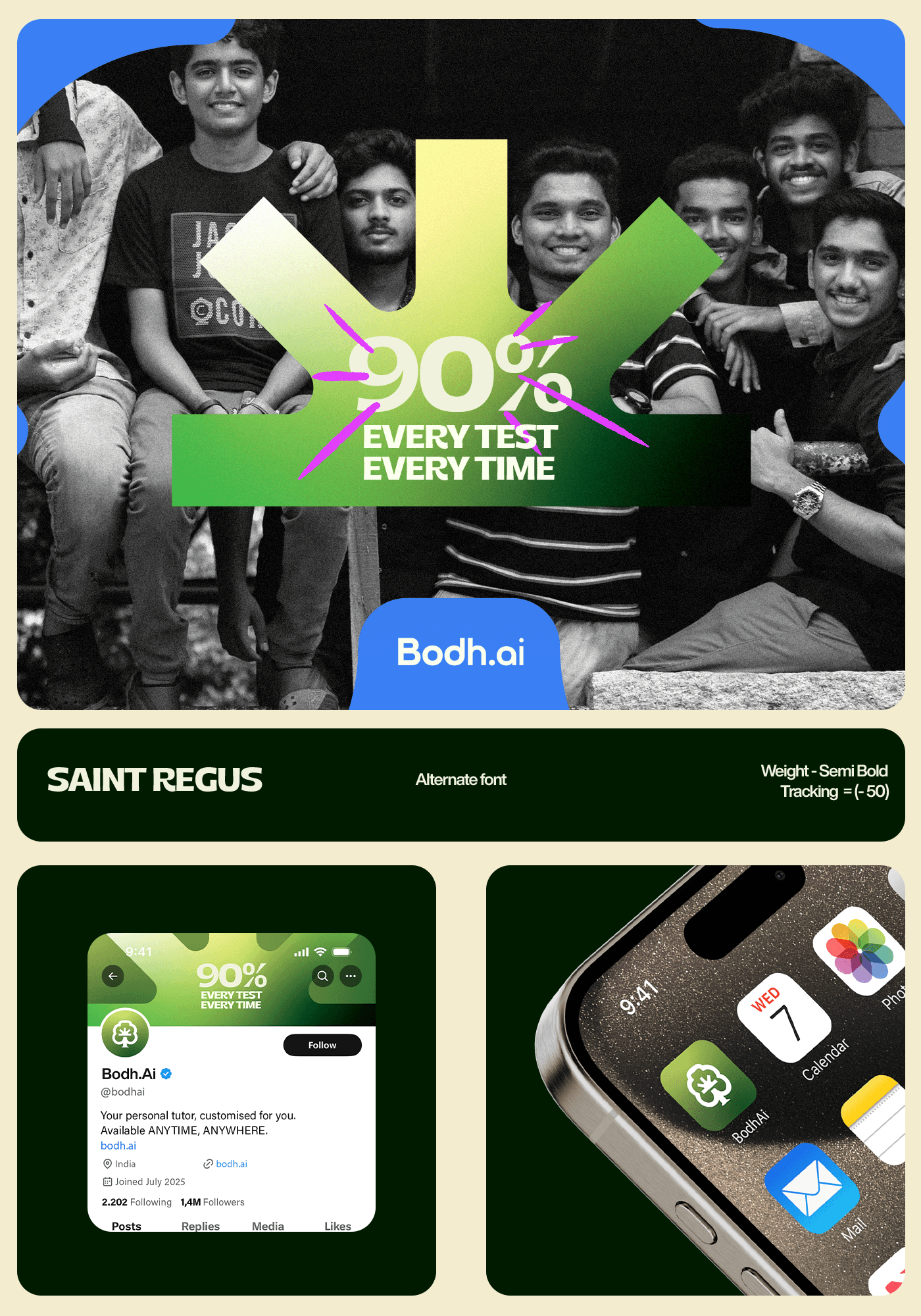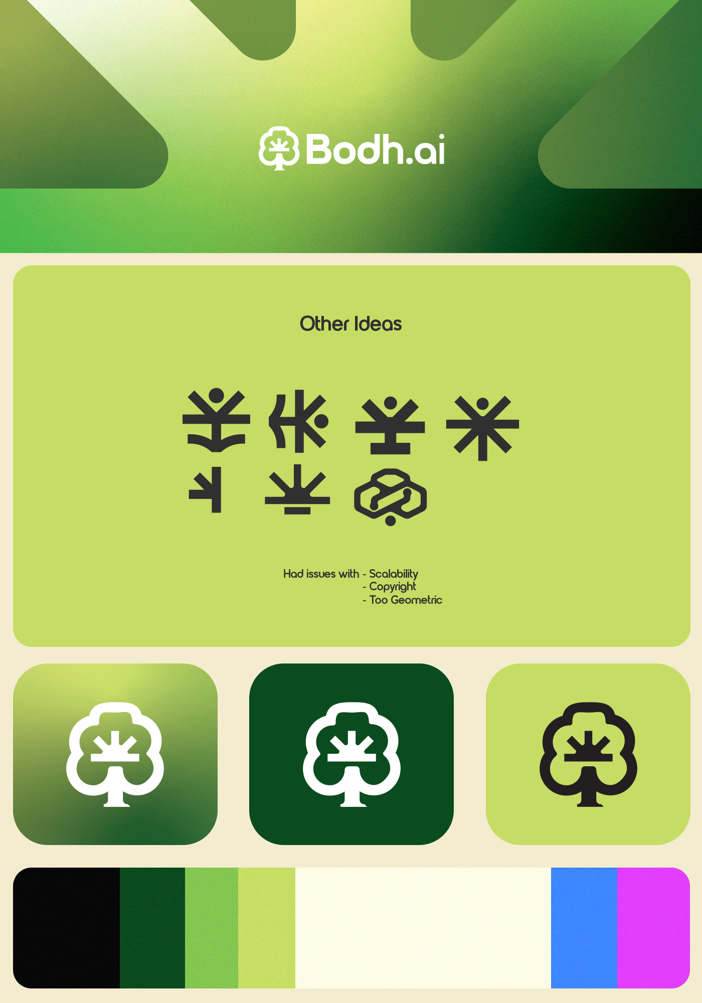 BodhAI, an AI study platform, needed a creative director to direct them through their founding process. I designed a clean, modern logo, visual systems for website, and marketing assets.